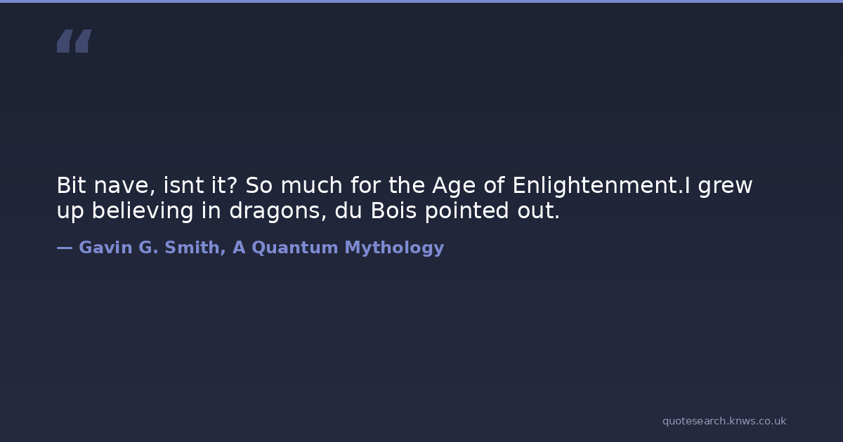 Bit nave, isnt it? So much for the Age of Enlightenment.I grew up believing in dragons, du Bois pointed out.