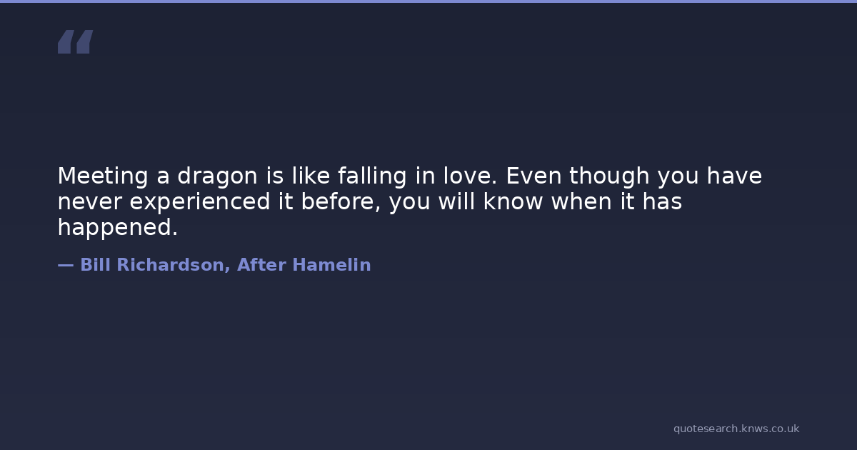 Meeting a dragon is like falling in love. Even though you have never experienced it before, you will know when it has happened.