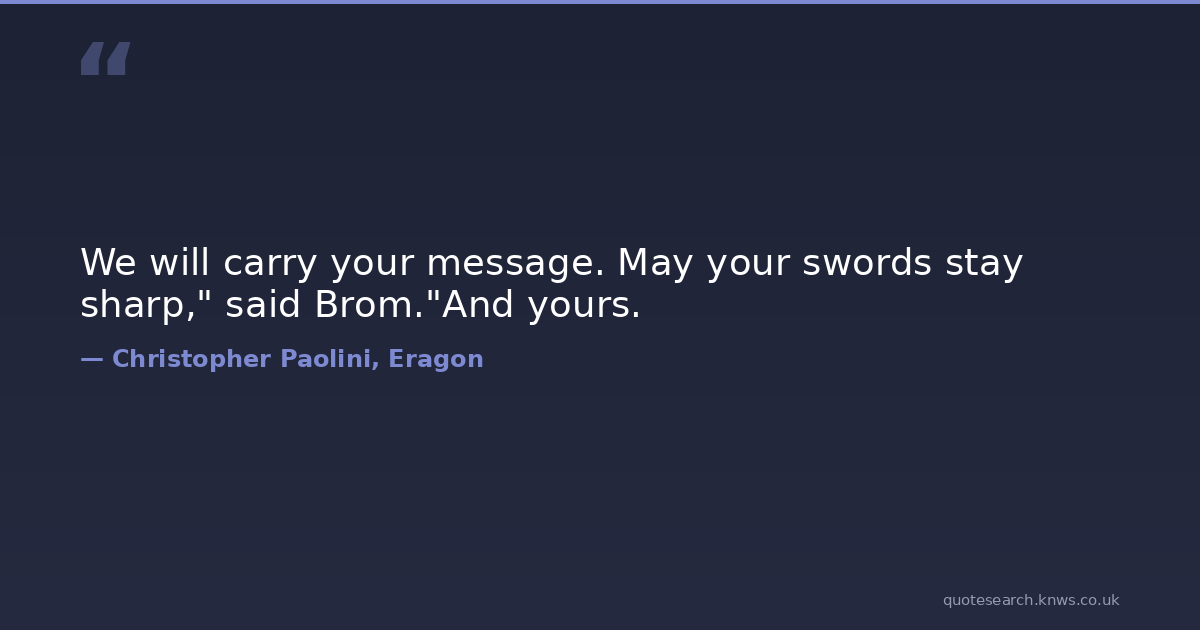 We will carry your message. May your swords stay sharp," said Brom."And yours.