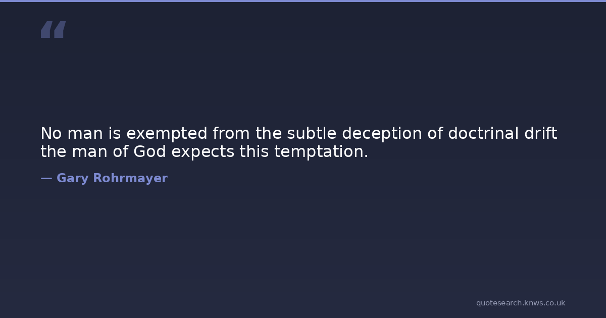 No man is exempted from the subtle deception of doctrinal drift the man of God expects this temptation.