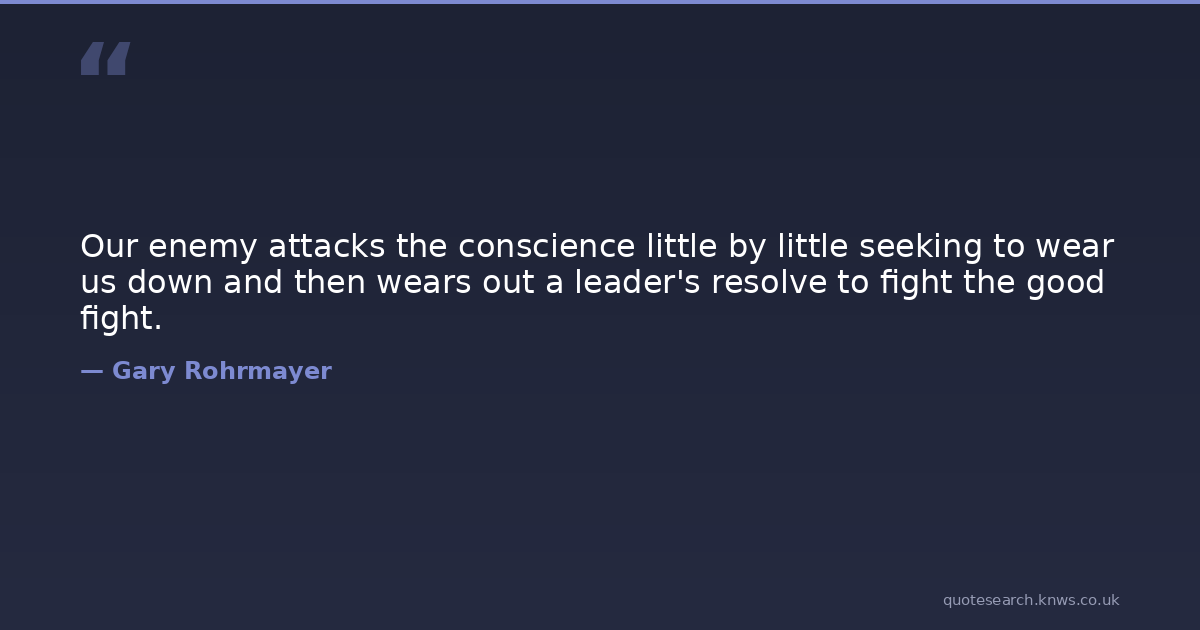 Our enemy attacks the conscience little by little seeking to wear us down and then wears out a leader's resolve to fight the good fight.