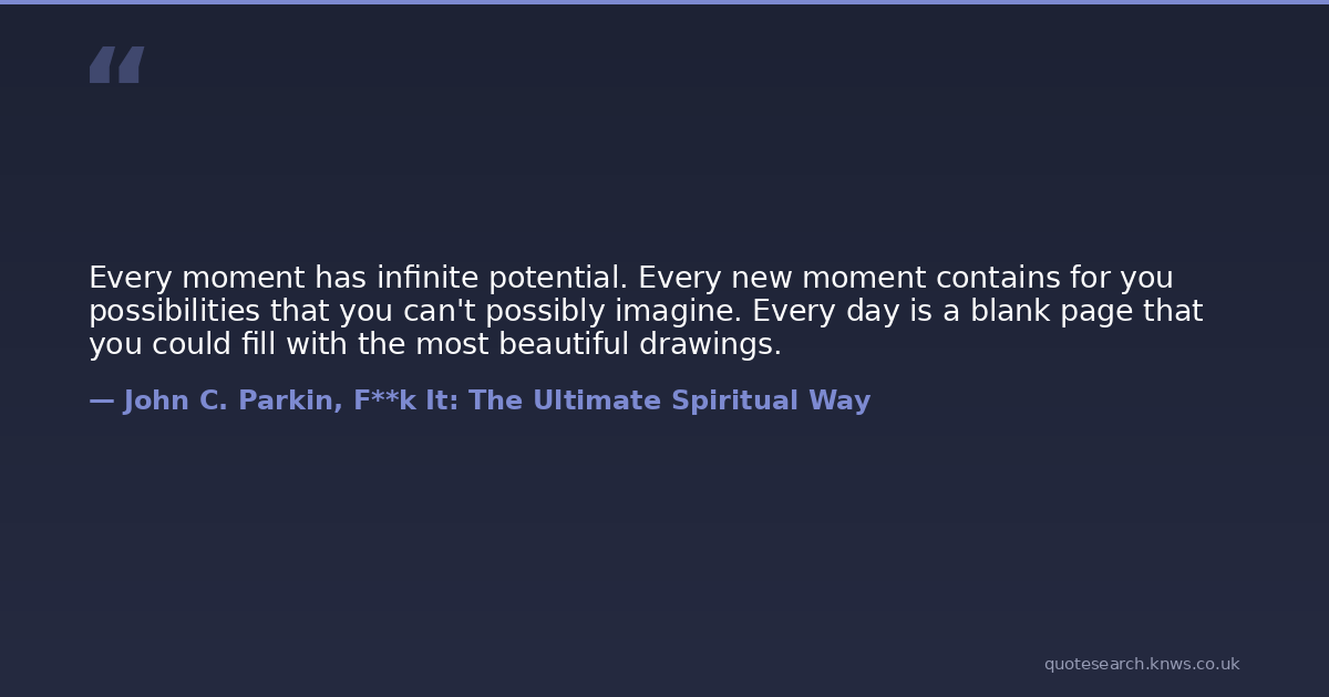 Every moment has infinite potential. Every new moment contains for you possibilities that you can't possibly imagine. Every day is a blank page that you could fill with the most beautiful drawings.