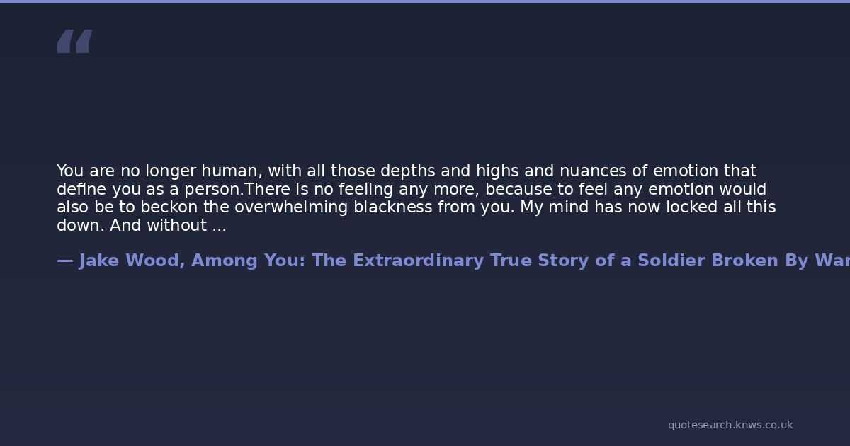 You are no longer human, with all those depths and highs and nuances of emotion that define you as a person.There is no feeling any more, because to feel any emotion would also be to beckon the overwhelming blackness from you. My mind has now locked all this down. And without any control of this self-defence mechanism my subconscious has operated. I do not feel any more.