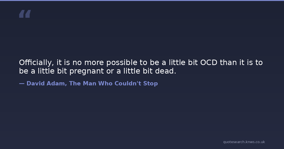 Officially, it is no more possible to be a little bit OCD than it is to be a little bit pregnant or a little bit dead.