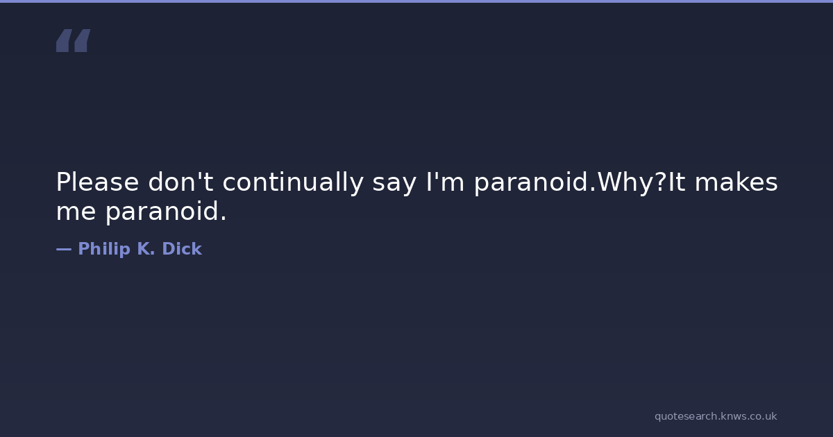 Please don't continually say I'm paranoid.Why?It makes me paranoid. medicalisation mental-health paranoia Download Image Share on X Share on Facebook Copy Link