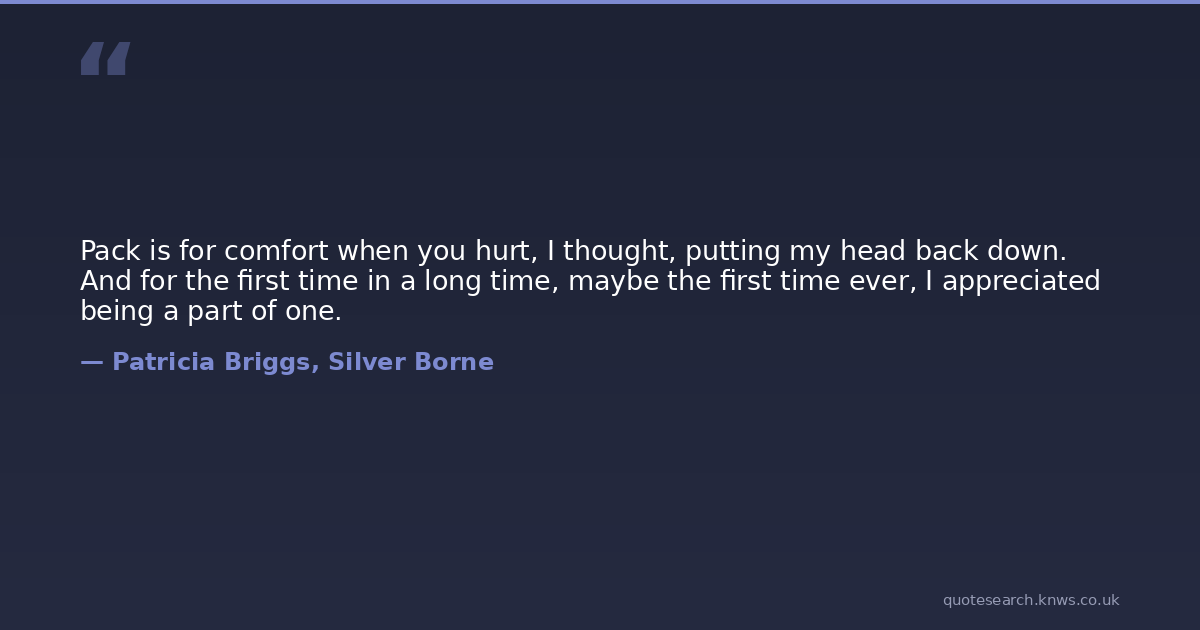 Pack is for comfort when you hurt, I thought, putting my head back down. And for the first time in a long time, maybe the first time ever, I appreciated being a part of one.