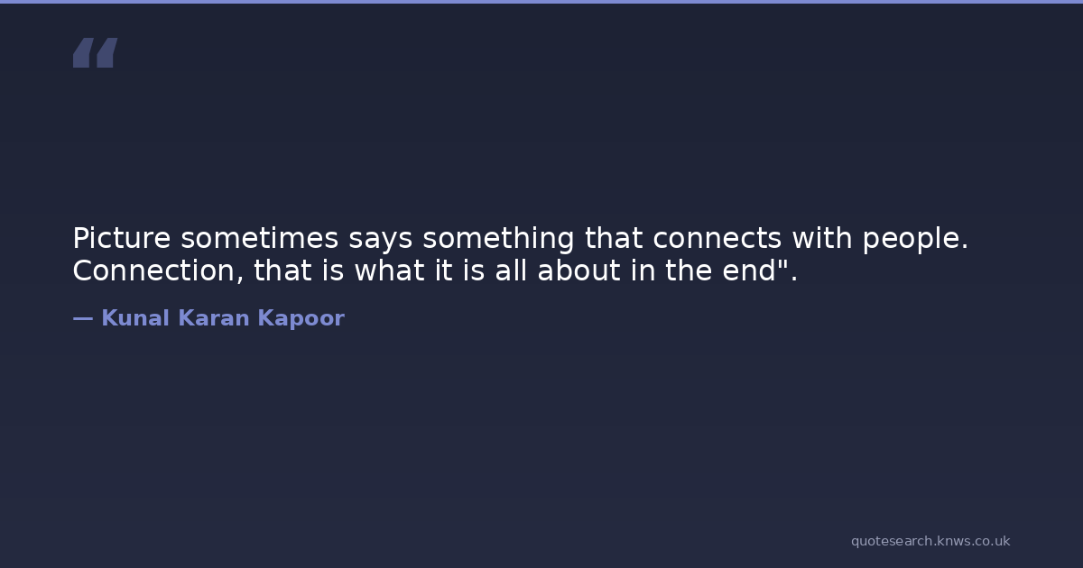 Picture sometimes says something that connects with people. Connection, that is what it is all about in the end".