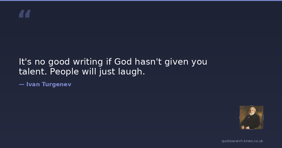 Ivan Turgenev was a 19th-century Russian writer. Ivan Sergeyevich Turgenev was a Russian novelist, short story writer, poet, playwright, translator and popularizer of Russian literature in the West. Read more on Wikipedia →