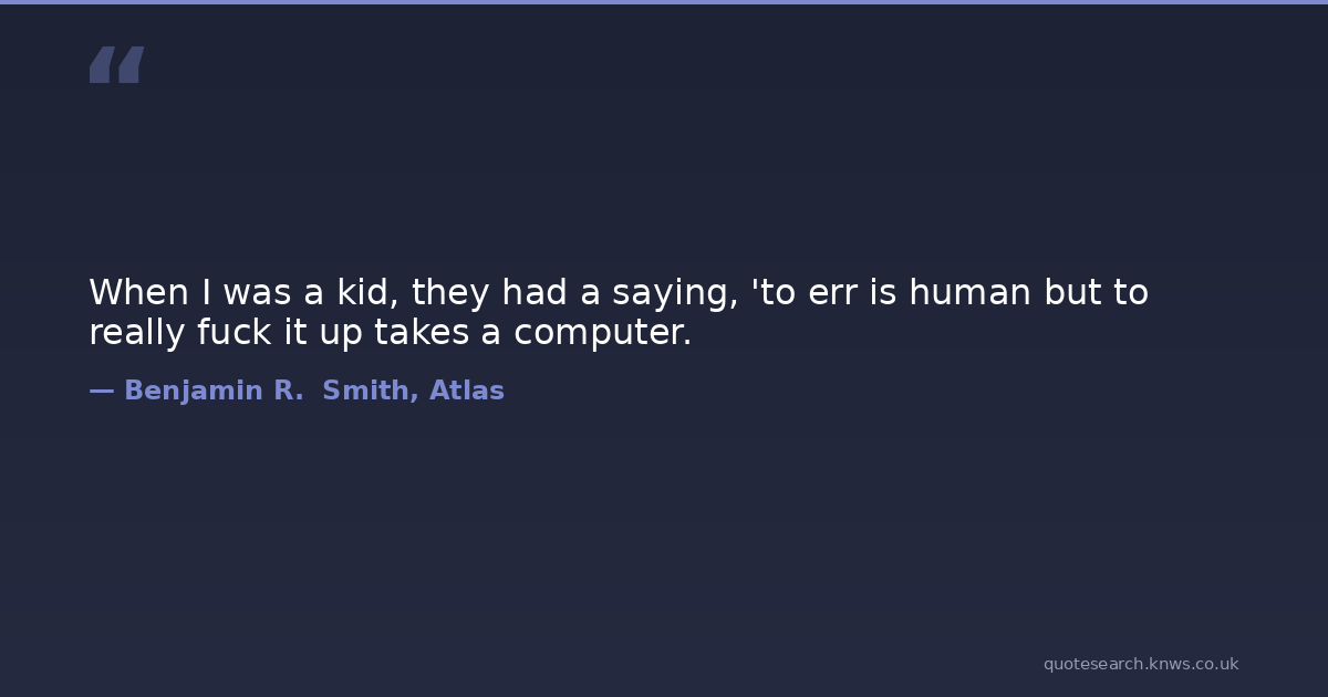 When I was a kid, they had a saying, 'to err is human but to really fuck it up takes a computer.