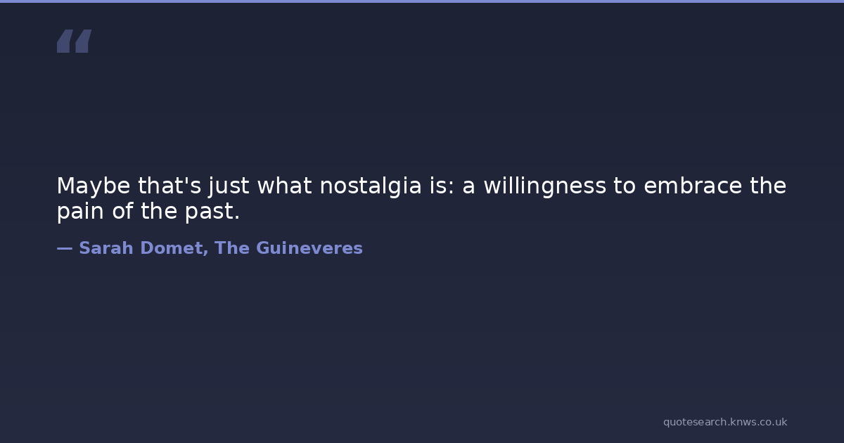 Maybe that's just what nostalgia is: a willingness to embrace the pain of the past. nostalgia Download Image Share on X Share on Facebook Copy Link