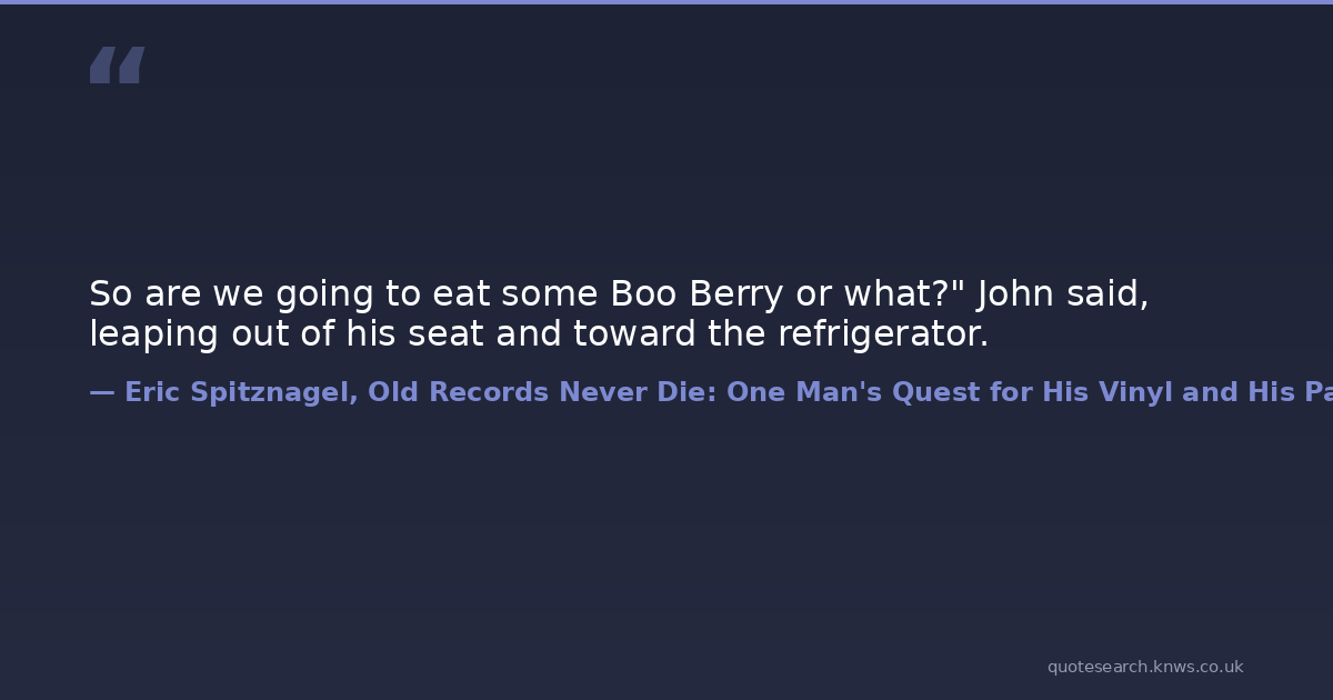 So are we going to eat some Boo Berry or what?" John said, leaping out of his seat and toward the refrigerator.