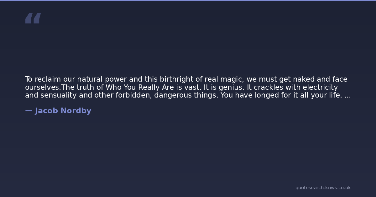 To reclaim our natural power and this birthright of real magic, we must get naked and face ourselves.The truth of Who You Really Are is vast. It is genius. It crackles with electricity and sensuality and other forbidden, dangerous things. You have longed for it all your life. You catch glimpses of it from the corner of your eye. A riff of music reminds you, a surge of ecstasy during sex brings you home, a crisp Autumn wind carries some long forgotten scent which thrills you for inexplicable reasons. A thousand tiny hints show up to seduce you awake and lead you back into your true nature, but they flee when you try to grasp them and leave you wondering if you were just imagining things. You werent though. This quality of richness and balance and home is Who You Really Are. That is the kingdom we seek and it waits for us to find it. It wants us to regain our rightful place.