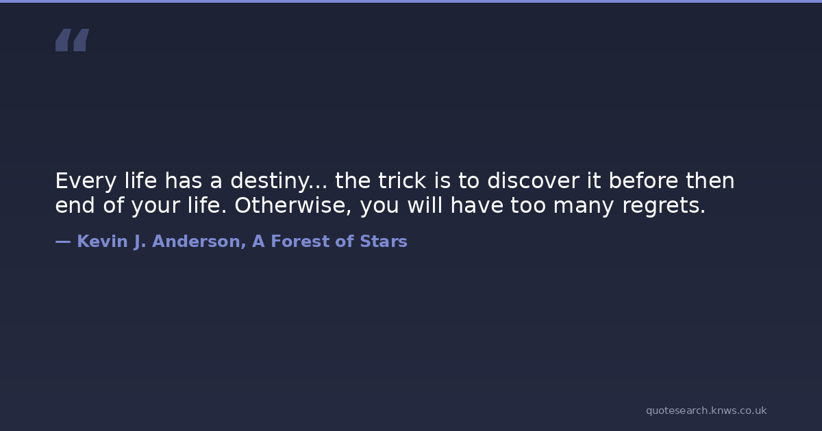 Every life has a destiny... the trick is to discover it before then end of your life. Otherwise, you will have too many regrets.