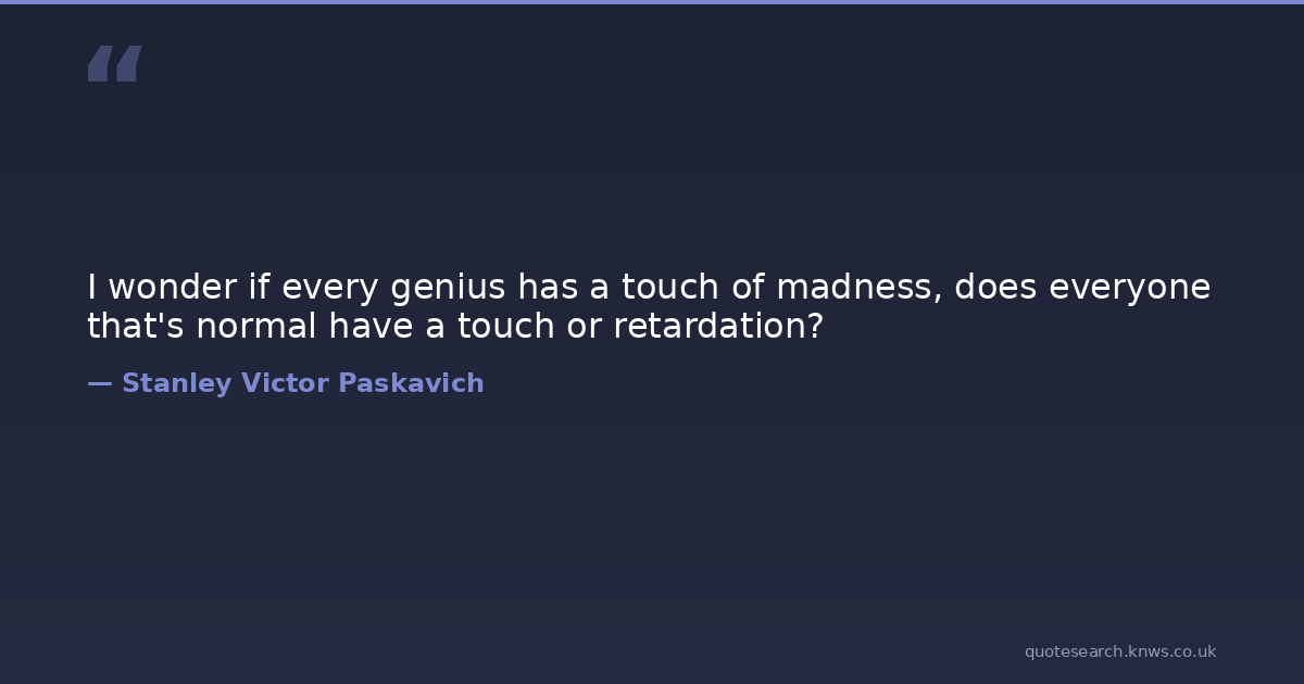 I wonder if every genius has a touch of madness, does everyone that's normal have a touch or retardation?