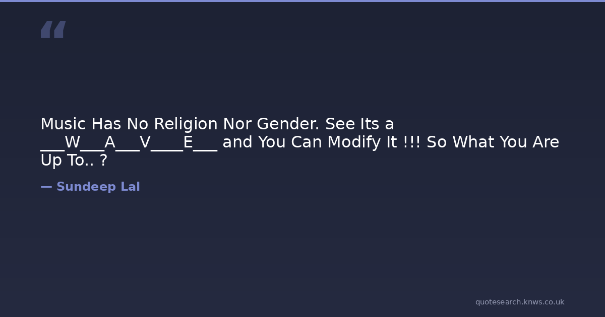 Music Has No Religion Nor Gender. See Its a ___W___A___V____E___ and You Can Modify It !!! So What You Are Up To.. ? gender music religion wave Download Image Share on X Share on Facebook Copy Link