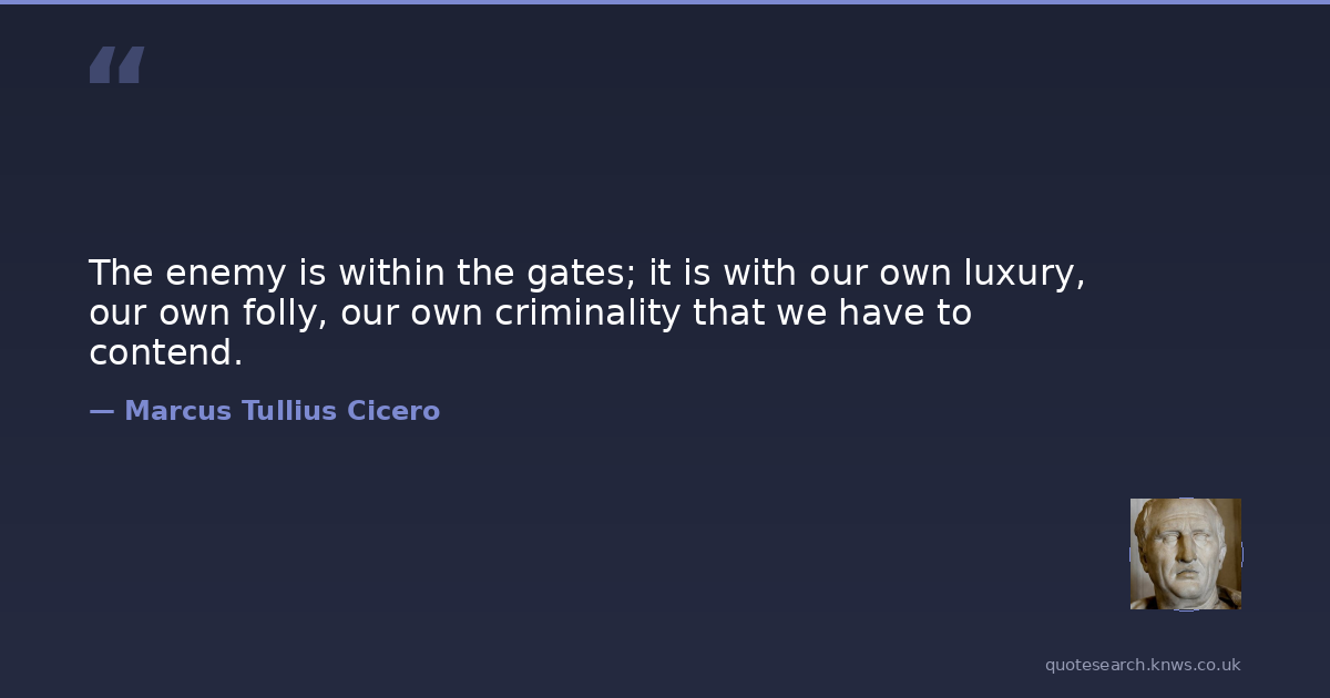 The enemy is within the gates; it is with our own luxury, our own folly, our own criminality that we have to contend.