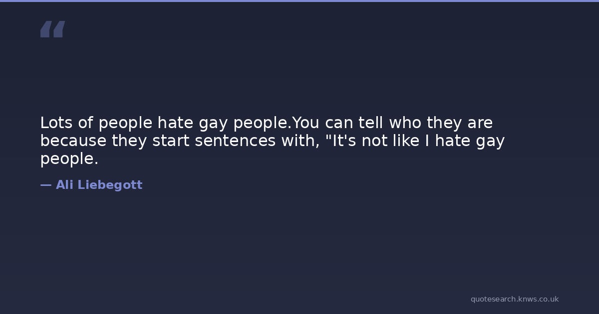 Lots of people hate gay people.You can tell who they are because they start sentences with, "It's not like I hate gay people.