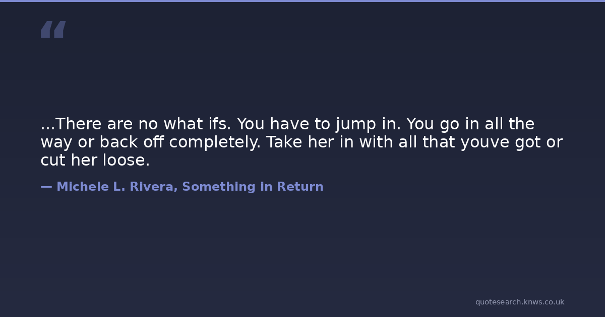 ...There are no what ifs. You have to jump in. You go in all the way or back off completely. Take her in with all that youve got or cut her loose.