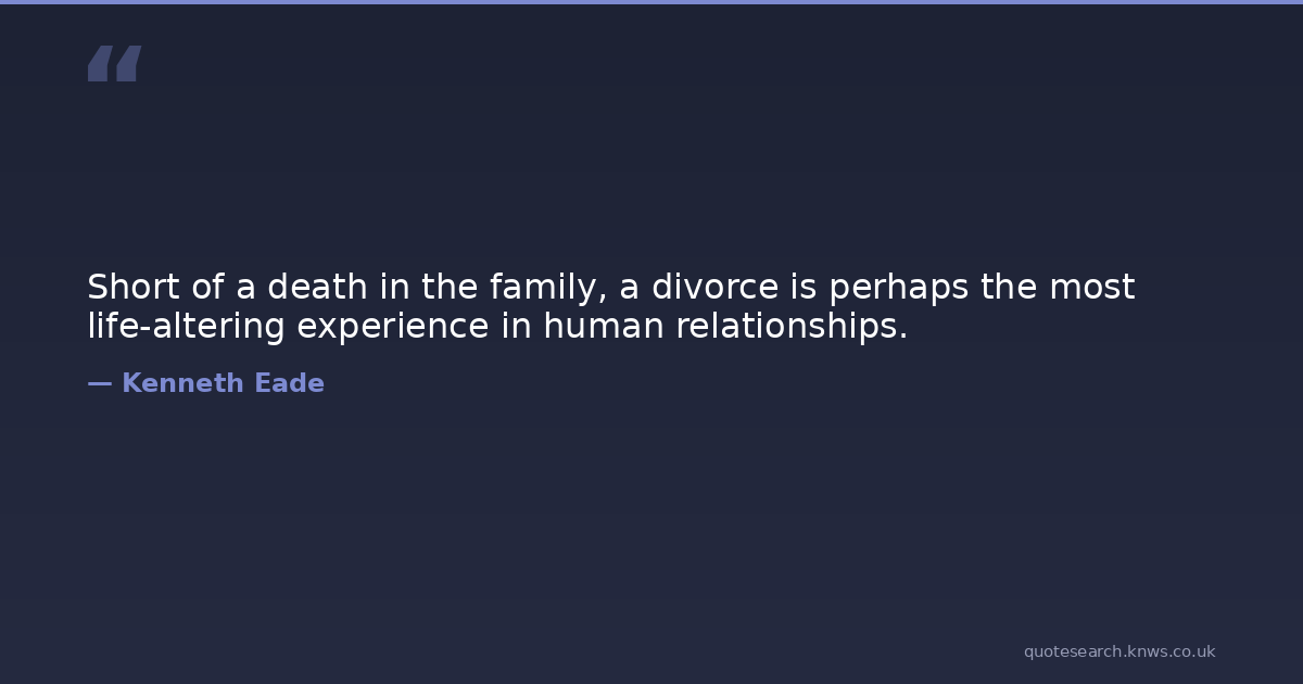 Short of a death in the family, a divorce is perhaps the most life-altering experience in human relationships.