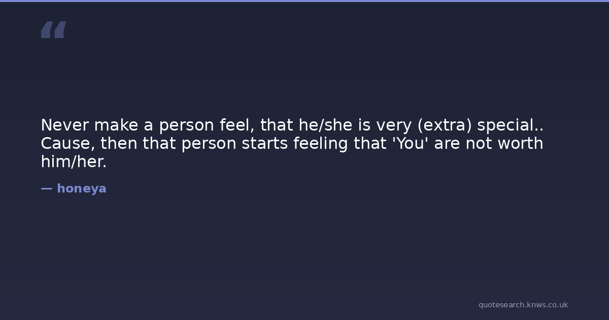 Never make a person feel, that he/she is very (extra) special.. Cause, then that person starts feeling that 'You' are not worth him/her.