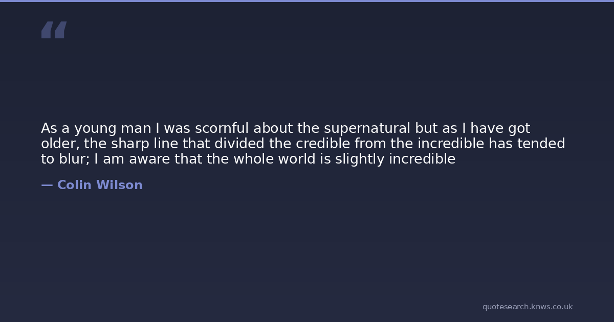 As a young man I was scornful about the supernatural but as I have got older, the sharp line that divided the credible from the incredible has tended to blur; I am aware that the whole world is slightly incredible