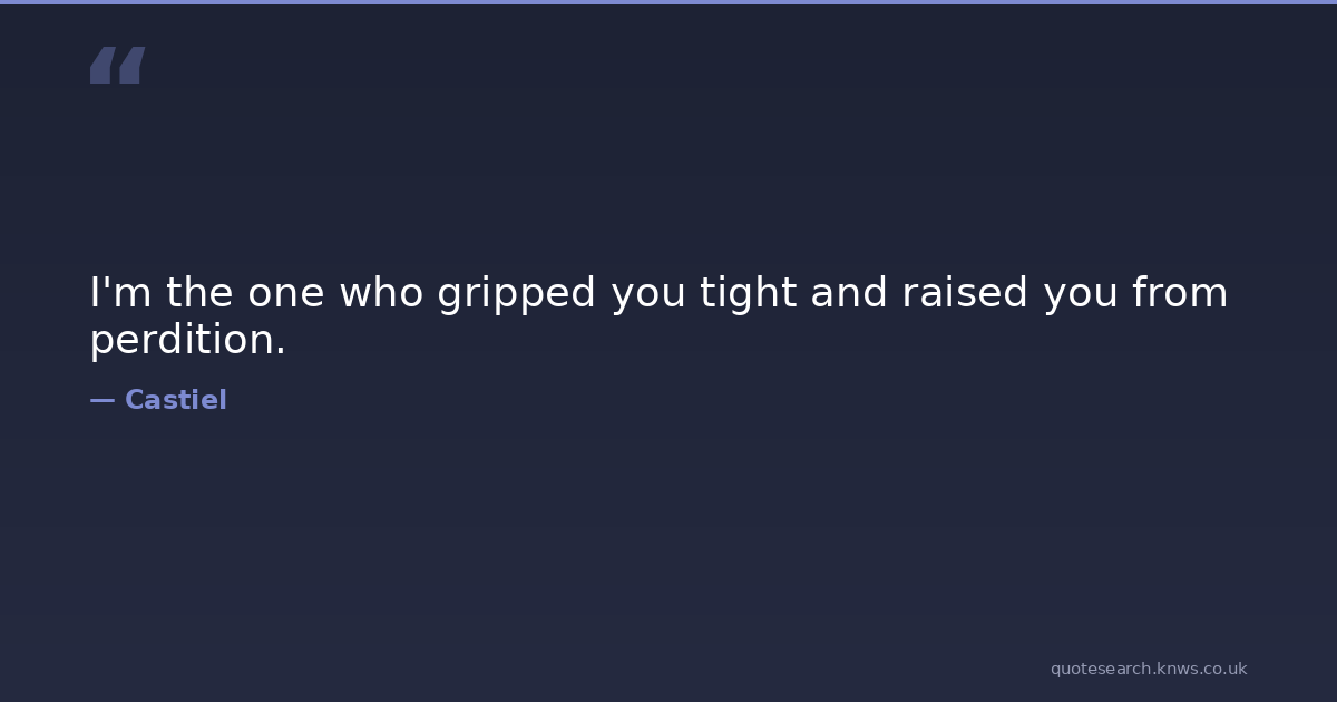 I'm the one who gripped you tight and raised you from perdition. cas castiel dean dean-winchester destiel supernatural Download Image Share on X Share on Facebook Copy Link