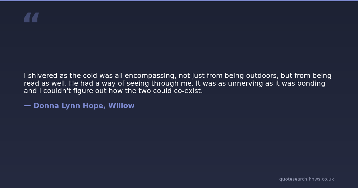 I shivered as the cold was all encompassing, not just from being outdoors, but from being read as well. He had a way of seeing through me. It was as unnerving as it was bonding and I couldn't figure out how the two could co-exist.