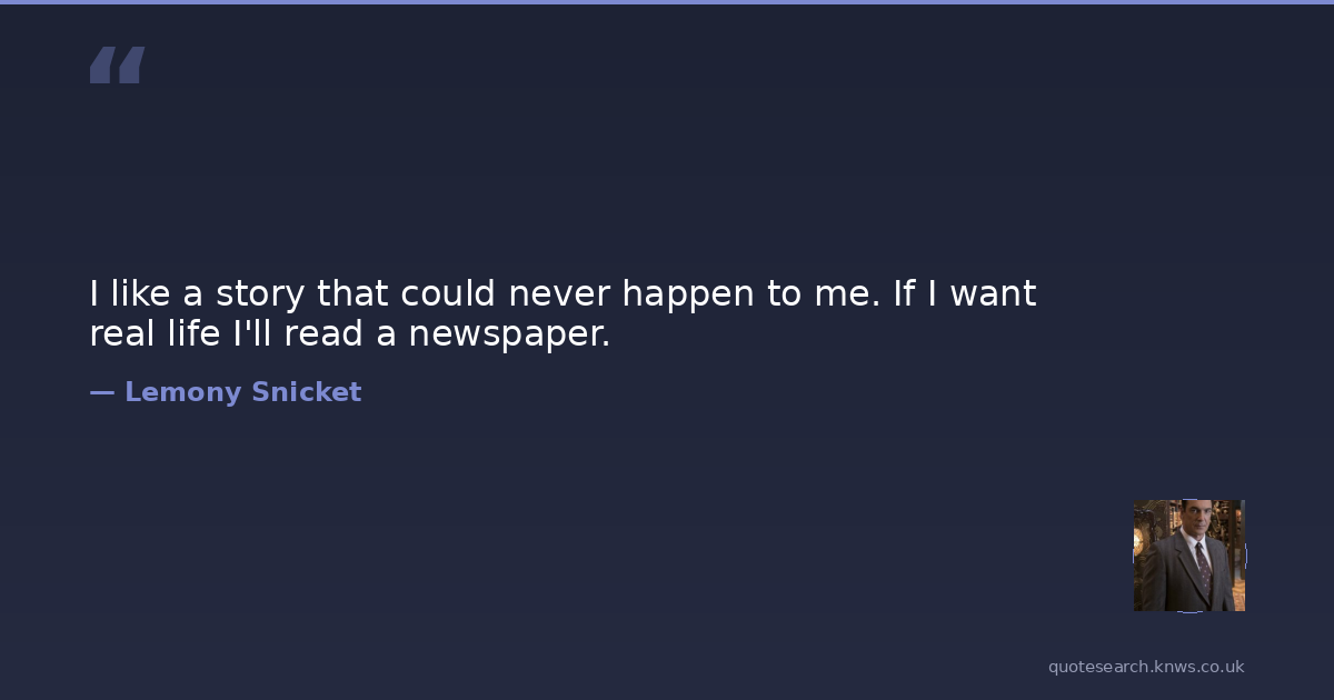 I like a story that could never happen to me. If I want real life I'll read a newspaper.