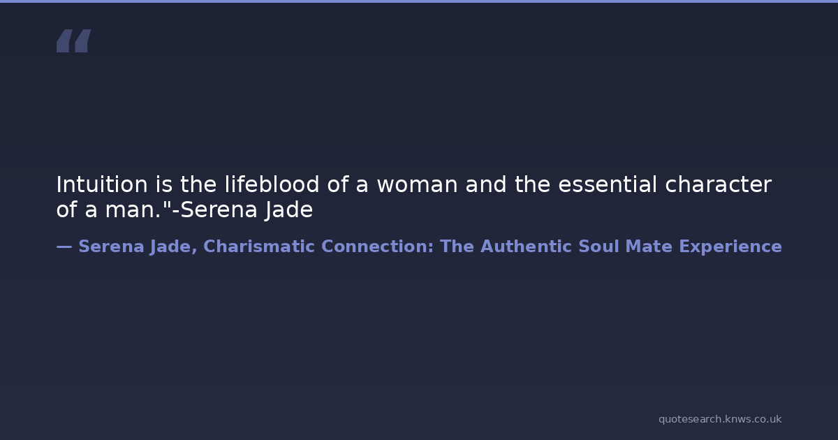 Intuition is the lifeblood of a woman and the essential character of a man."-Serena Jade