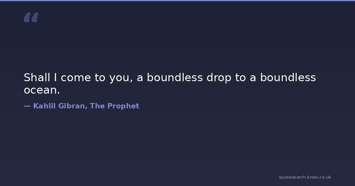 Shall I come to you, a boundless drop to a boundless ocean. boundless ocean sea water Download Image Share on X Share on Facebook Copy Link