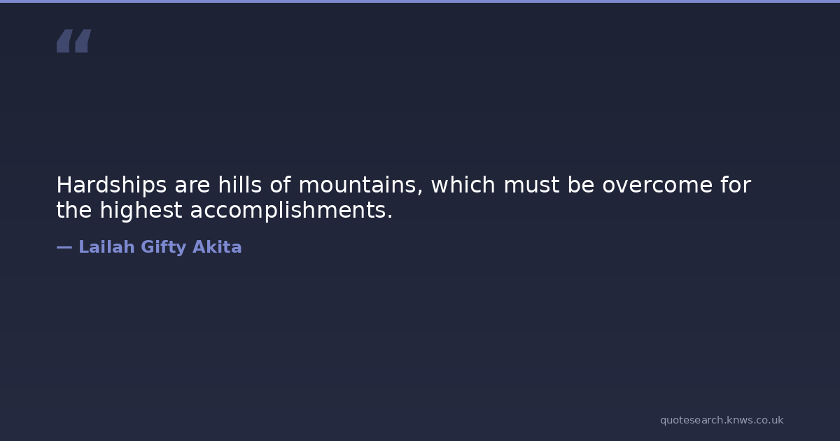 Hardships are hills of mountains, which must be overcome for the highest accomplishments.