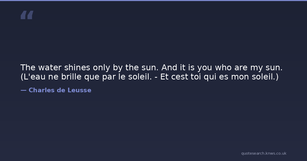 The water shines only by the sun. And it is you who are my sun. (L'eau ne brille que par le soleil. - Et cest toi qui es mon soleil.)
