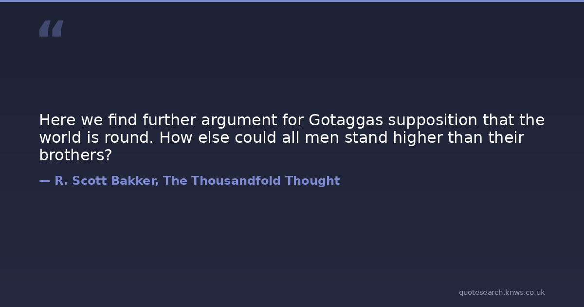Here we find further argument for Gotaggas supposition that the world is round. How else could all men stand higher than their brothers?