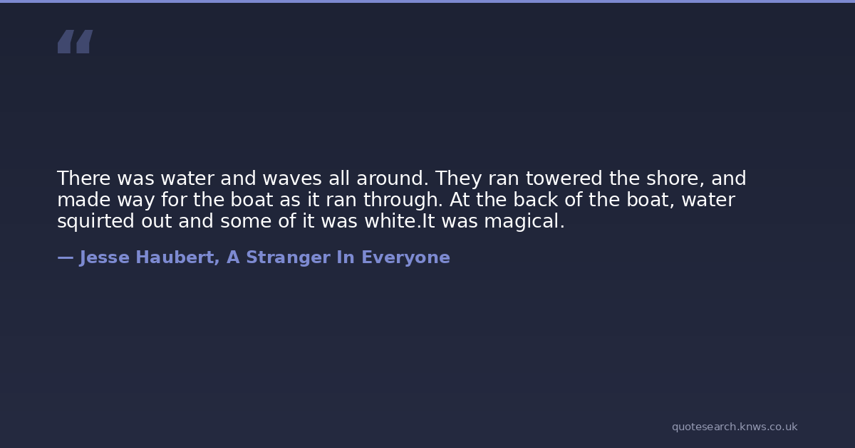There was water and waves all around. They ran towered the shore, and made way for the boat as it ran through. At the back of the boat, water squirted out and some of it was white.It was magical.