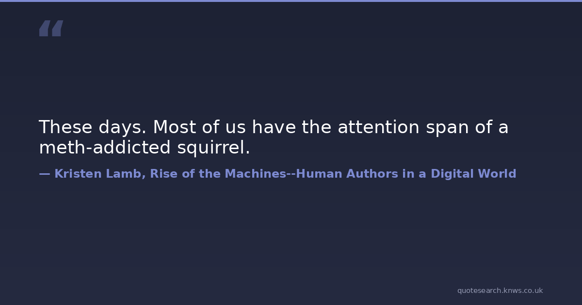 These days. Most of us have the attention span of a meth-addicted squirrel. authors humor social-media Download Image Share on X Share on Facebook Copy Link