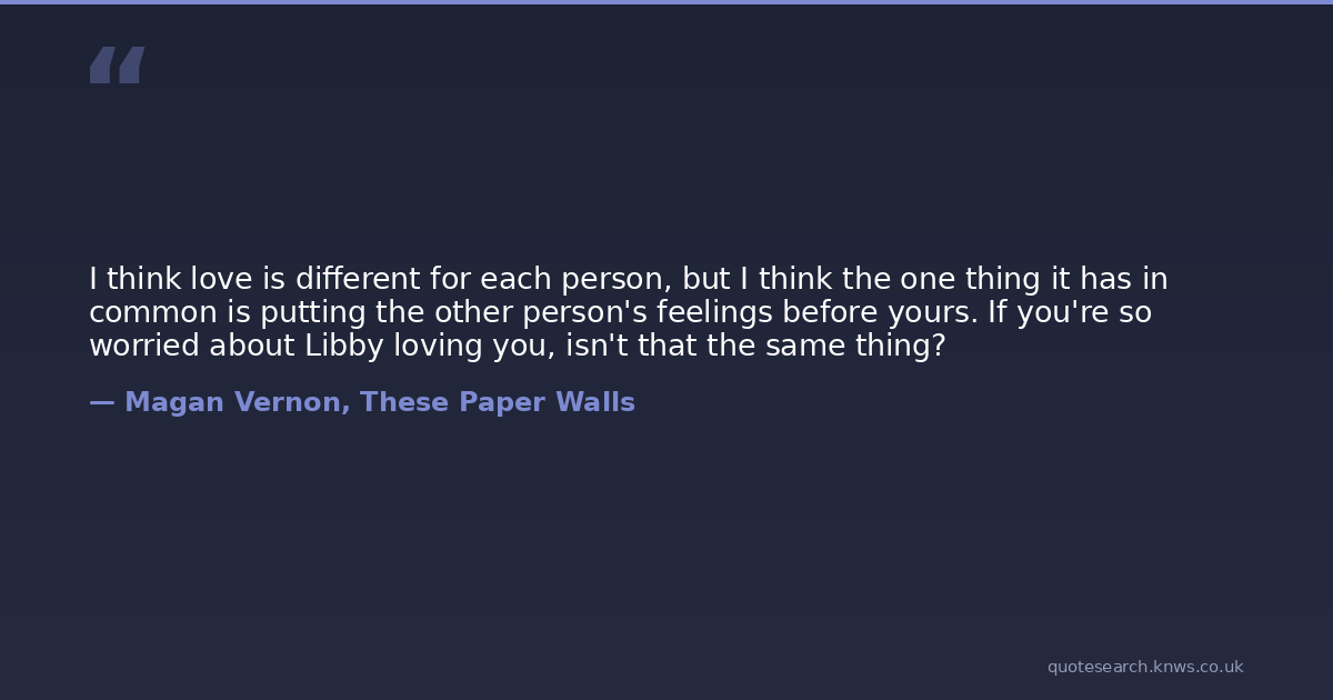 I think love is different for each person, but I think the one thing it has in common is putting the other person's feelings before yours. If you're so worried about Libby loving you, isn't that the same thing?