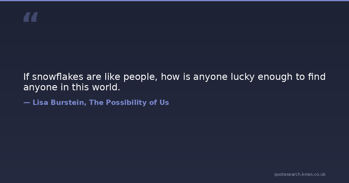 If snowflakes are like people, how is anyone lucky enough to find anyone in this world. new-adult romance Download Image Share on X Share on Facebook Copy Link