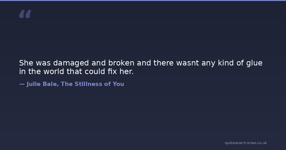 She was damaged and broken and there wasnt any kind of glue in the world that could fix her.