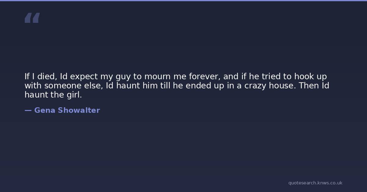 If I died, Id expect my guy to mourn me forever, and if he tried to hook up with someone else, Id haunt him till he ended up in a crazy house. Then Id haunt the girl.
