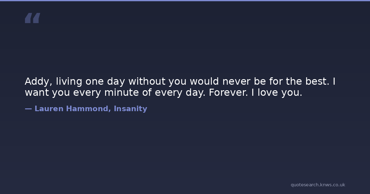 Addy, living one day without you would never be for the best. I want you every minute of every day. Forever. I love you.