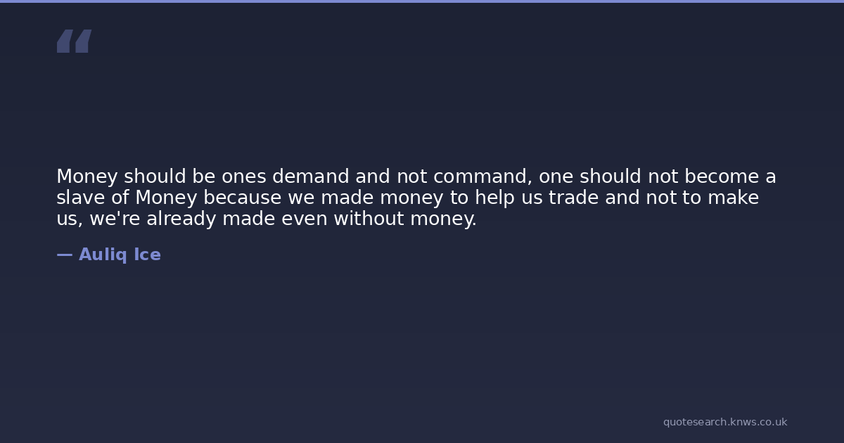 Money should be ones demand and not command, one should not become a slave of Money because we made money to help us trade and not to make us, we're already made even without money.