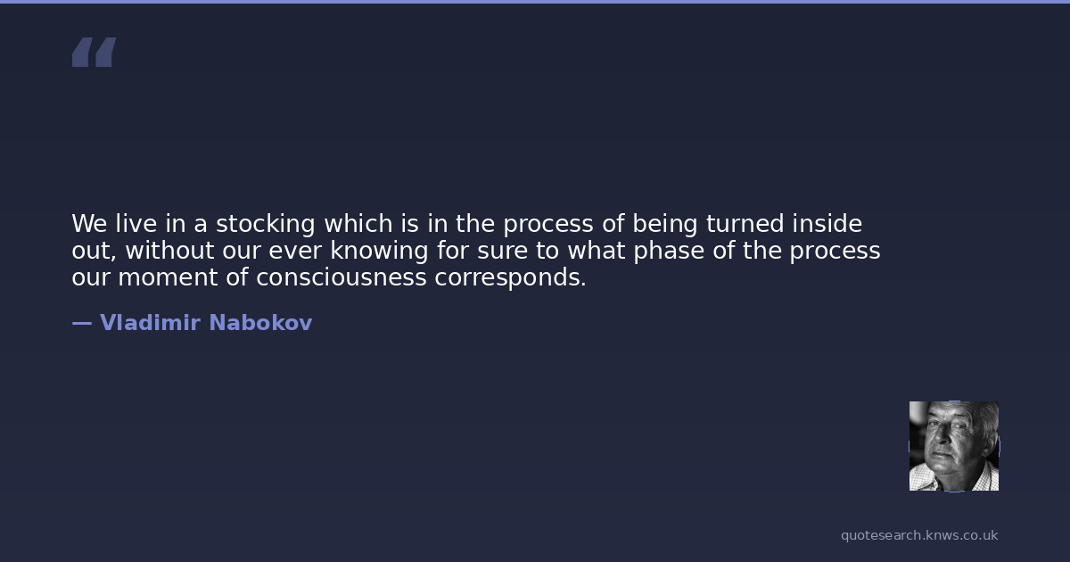We live in a stocking which is in the process of being turned inside out, without our ever knowing for sure to what phase of the process our moment of consciousness corresponds.