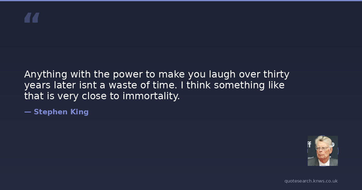 Anything with the power to make you laugh over thirty years later isnt a waste of time. I think something like that is very close to immortality.