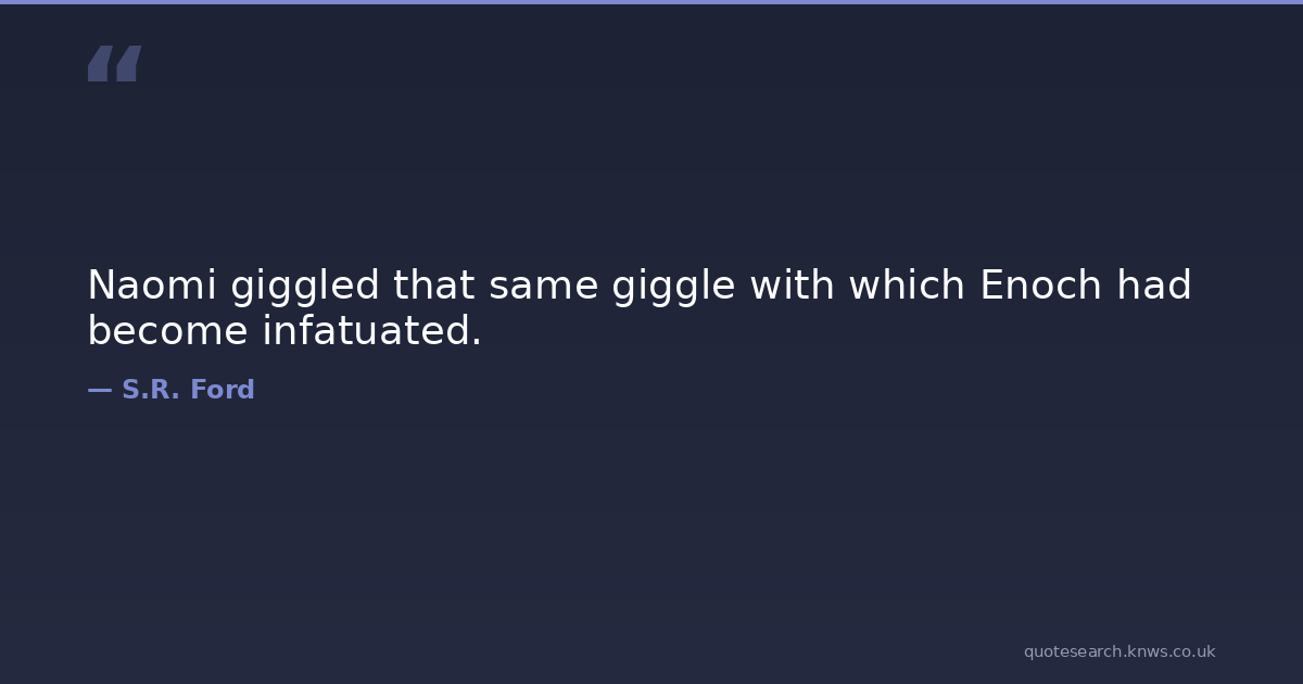 Naomi giggled that same giggle with which Enoch had become infatuated. enoch giggle infatuation laughter love naomi Download Image Share on X Share on Facebook Copy Link