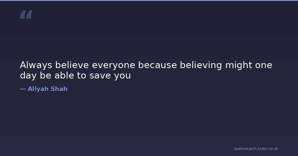 Always believe everyone because believing might one day be able to save you laughter Download Image Share on X Share on Facebook Copy Link