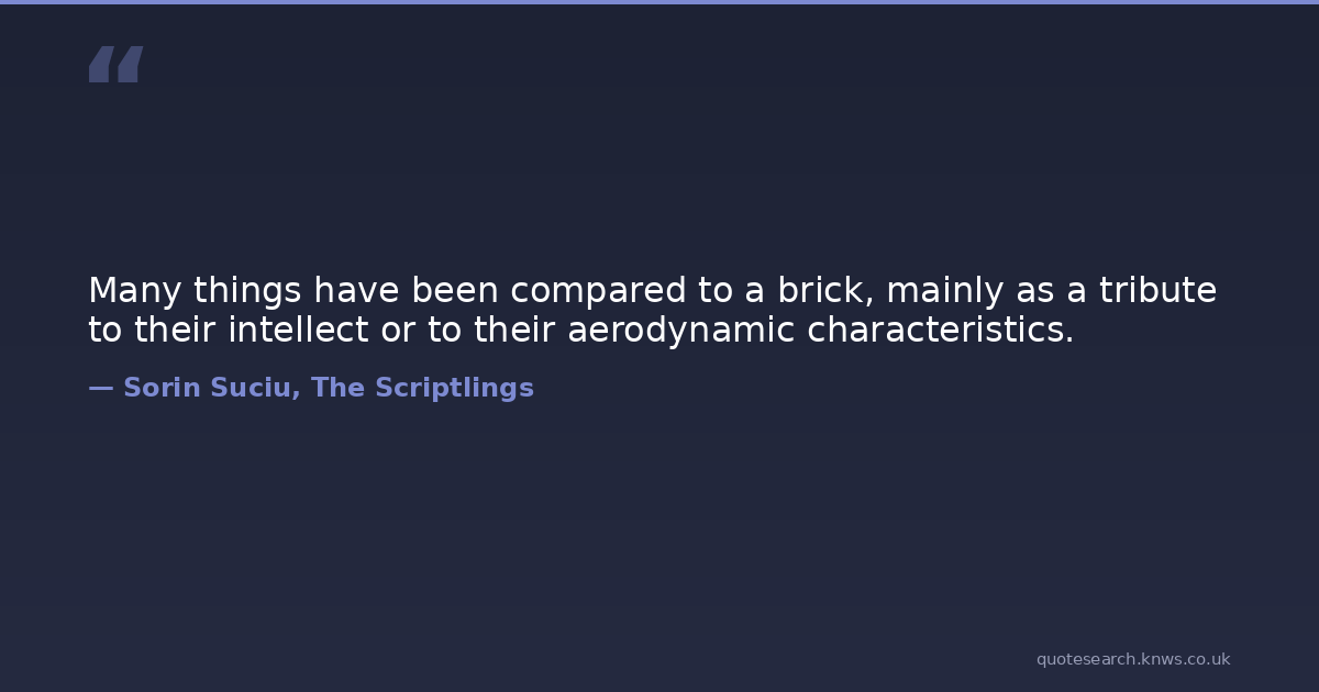 Many things have been compared to a brick, mainly as a tribute to their intellect or to their aerodynamic characteristics.