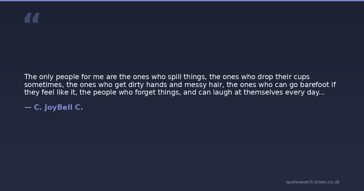The only people for me are the ones who spill things, the ones who drop their cups sometimes, the ones who get dirty hands and messy hair, the ones who can go barefoot if they feel like it, the people who forget things, and can laugh at themselves every day...