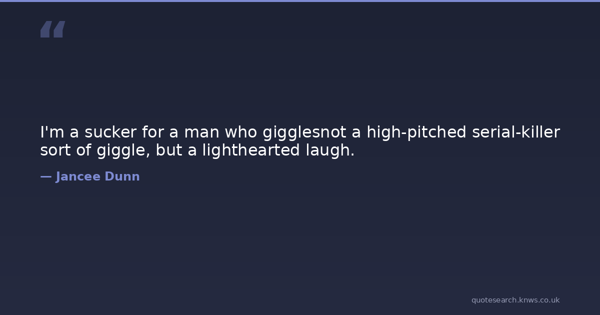 I'm a sucker for a man who gigglesnot a high-pitched serial-killer sort of giggle, but a lighthearted laugh. laughter Download Image Share on X Share on Facebook Copy Link