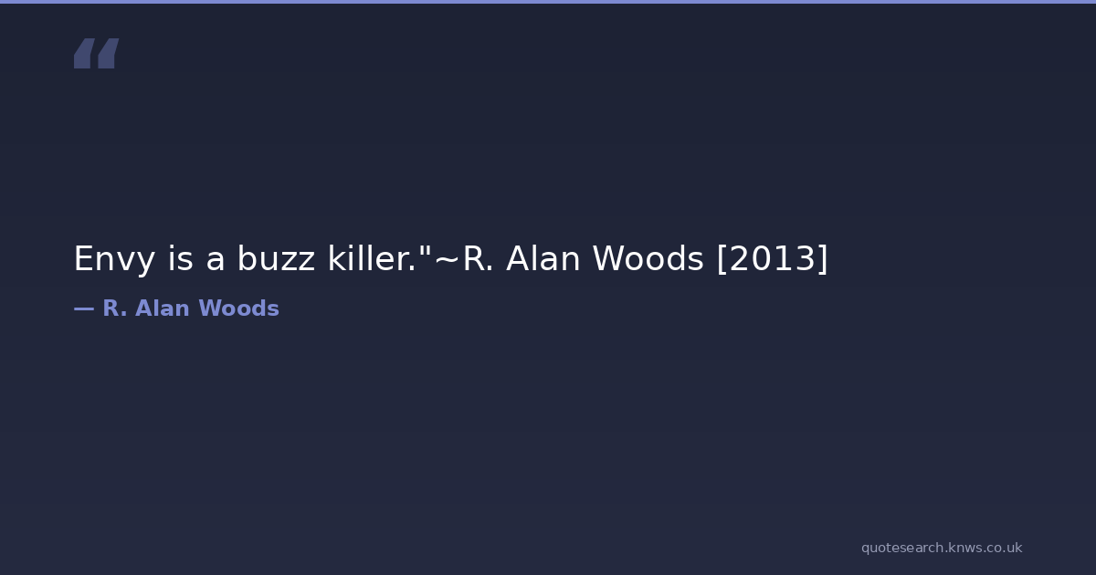 Envy is a buzz killer."~R. Alan Woods [2013] envy jealousy r-alan-woods Download Image Share on X Share on Facebook Copy Link