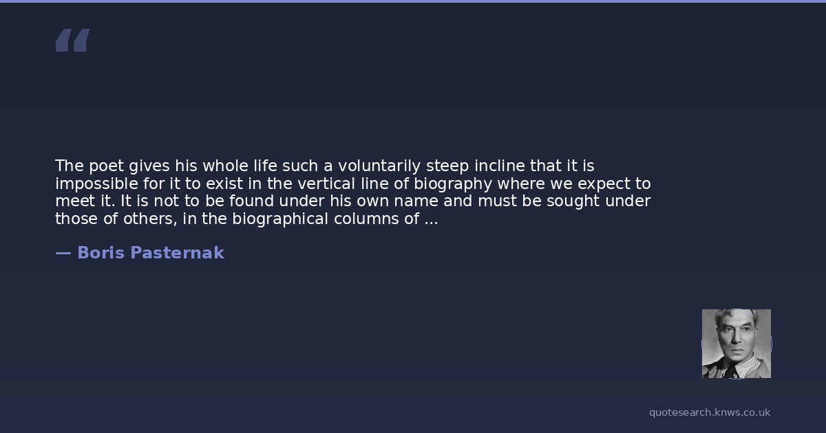 The poet gives his whole life such a voluntarily steep incline that it is impossible for it to exist in the vertical line of biography where we expect to meet it. It is not to be found under his own name and must be sought under those of others, in the biographical columns of his followers. The more self-contained the individuality from which the life derives, the more collective, without any figurative speaking, is its story.